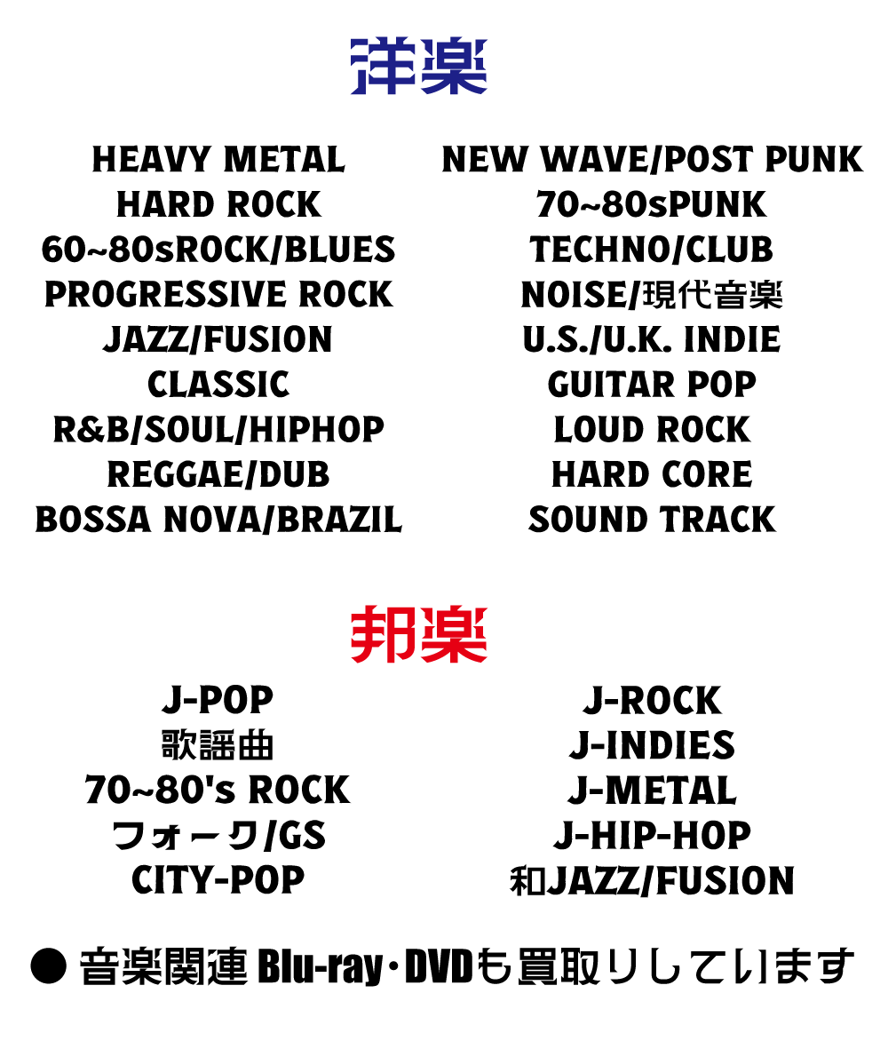 特に70~80年代の昭和ロック、フォーク、GS、シティポップ、京都人が大好きな80年代のニューウェイヴ&初期パンク/ハードコア、ジャパメタ、和JAZZ..等々!